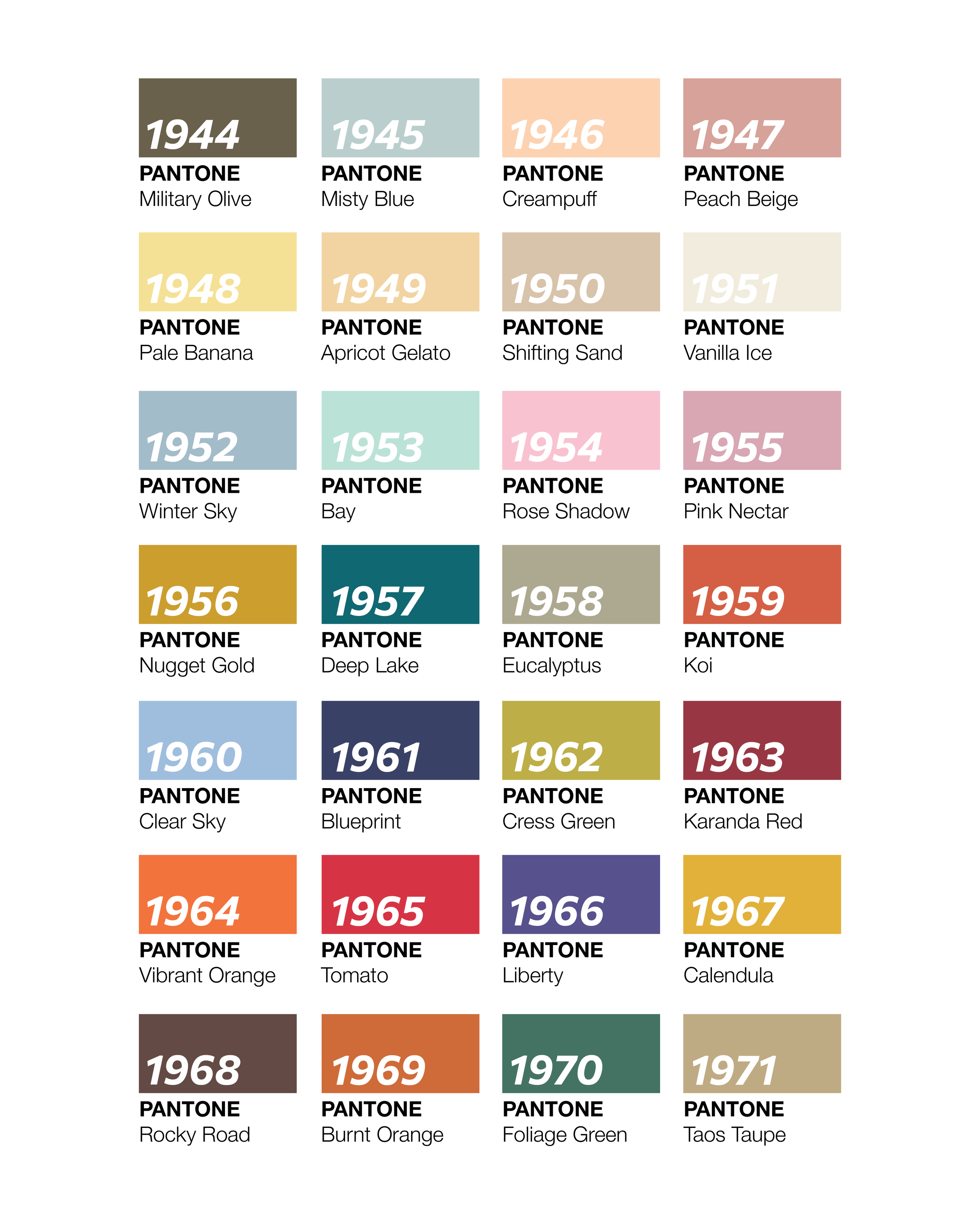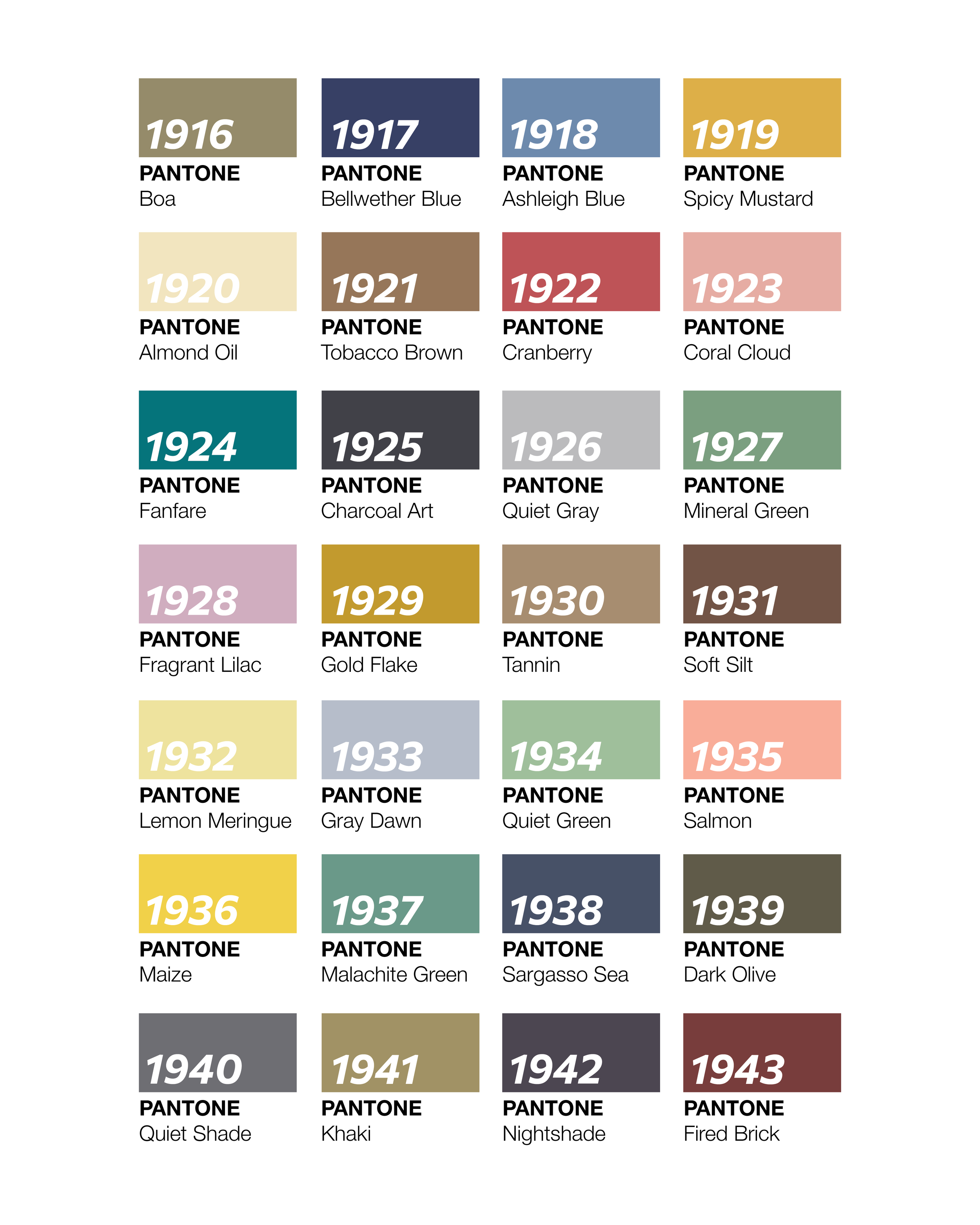 Découvrez ma relecture culturelle et sensible de 90 années de couleur, où l’histoire, les émotions collectives, l’industrie et les usages ont façonné ce que nous aurions aujourd’hui appelé «la couleur de l’année».
